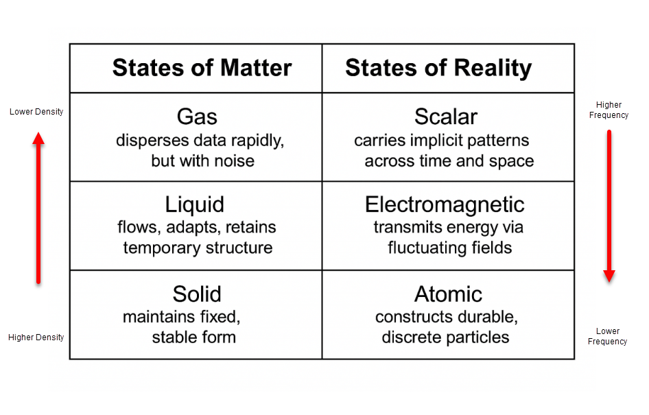 Here is a helpful comparison…Just like matter can shift between three states — solid → liquid → gas — reality itself is structured in three deeper layers:
