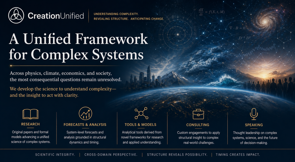 The objective is not to provide isolated solutions. It is to develop and apply a framework capable of describing how complex systems behave—