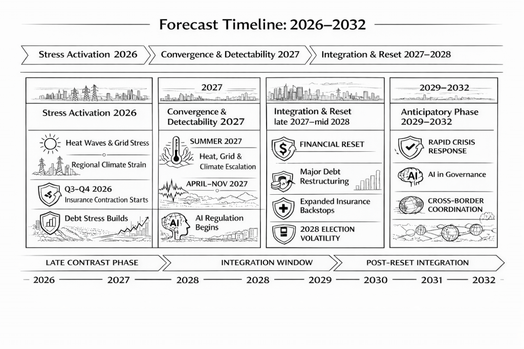 Large-scale systems such as climate, finance, infrastructure, governance, and technology do not evolve randomly. They respond to identifiable structural constraints: capital cycles, fiscal calendars, seasonal load patterns, debt rollover schedules, regulatory windows, and technological adoption curves. When these constraints accumulate, stress intensifies and eventual reorganization follows.