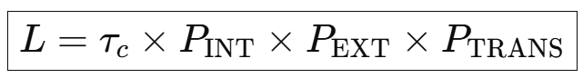 | Factor $L$ | Single parameter, $L$ (Mean Lifetime) | Conditional Filter Factors ($\tau_c \times P_{\text{INT}} \times P_{\text{EXT}} \times P_{\text{TRANS}}$) |